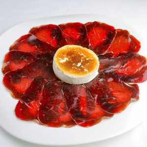 Cecina en aceite de oliva virgen extra con queso de cabra