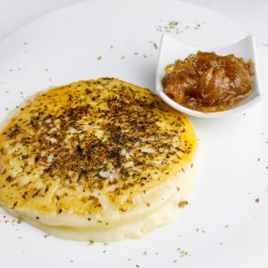 Queso provolone a la plancha con mermelada de cebolla