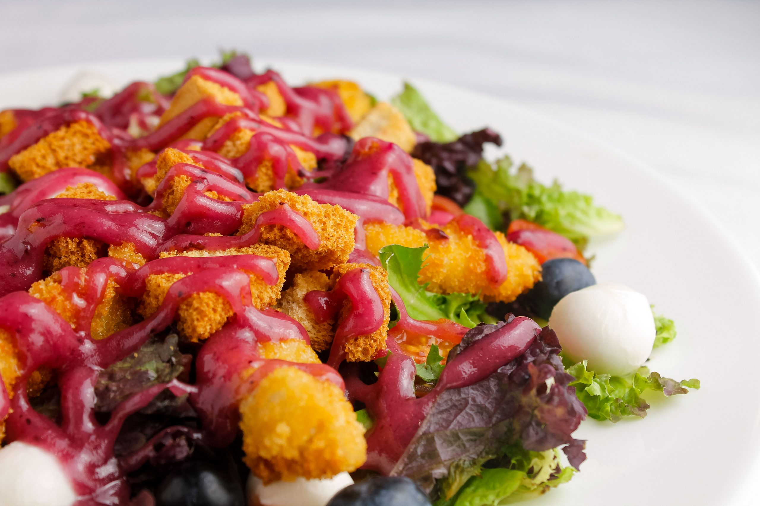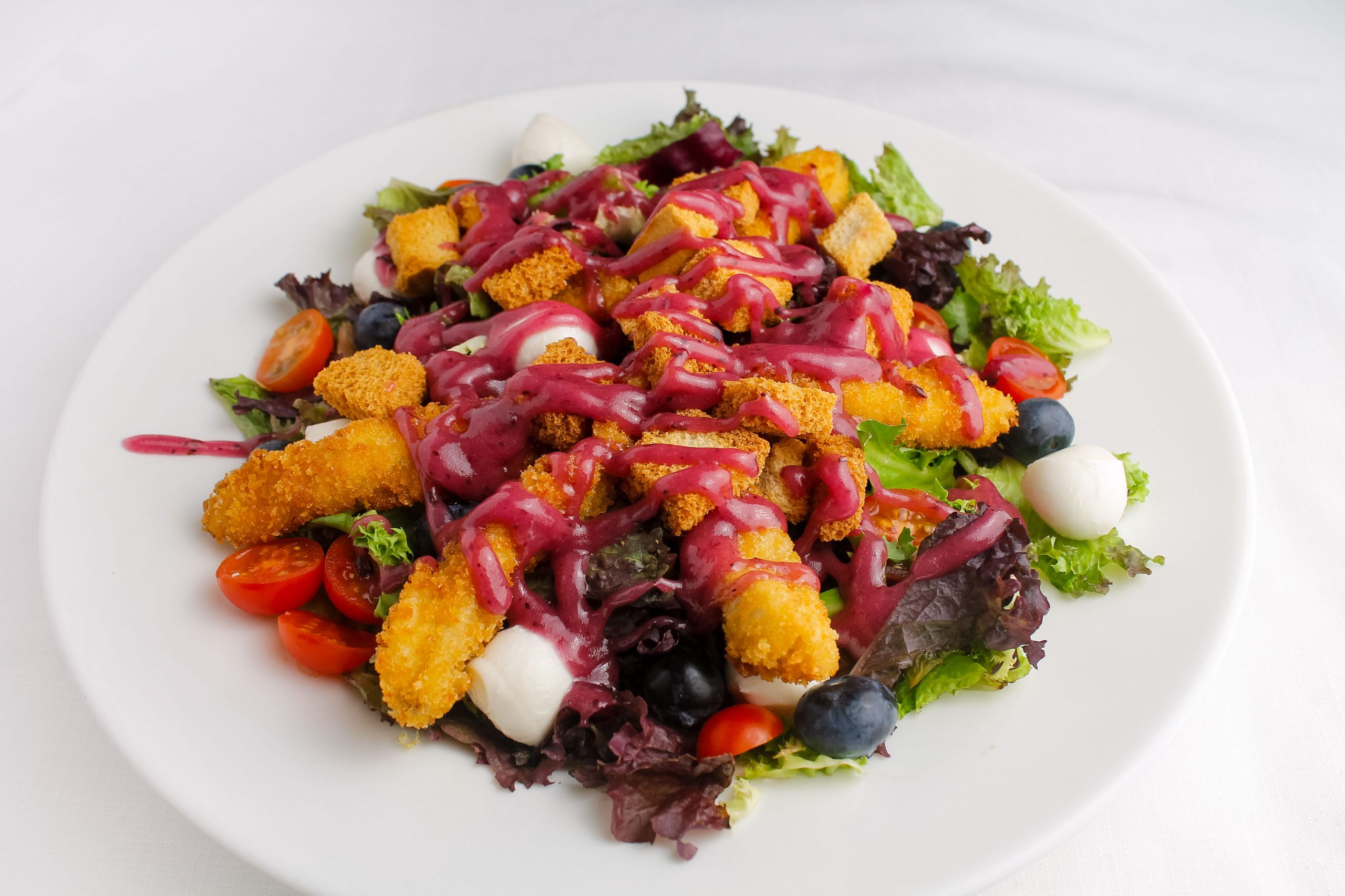 Ensalada de pollo y vinagreta de arándanos